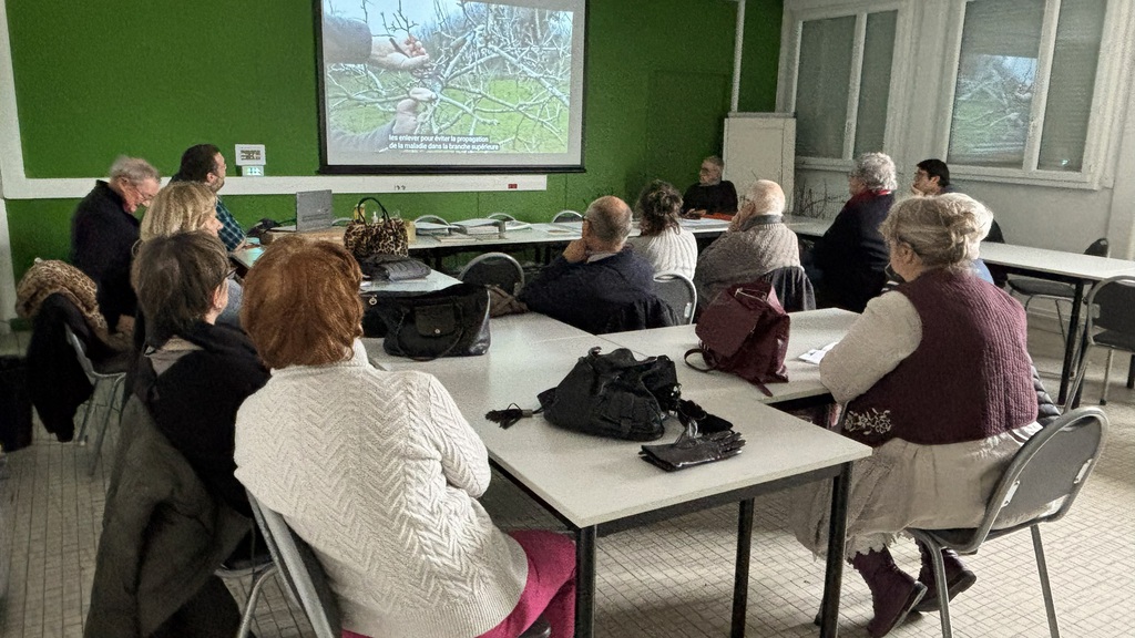 Quelques photos d'adhérents venus assister au cours théorique de la taille des arbres fruitiers
