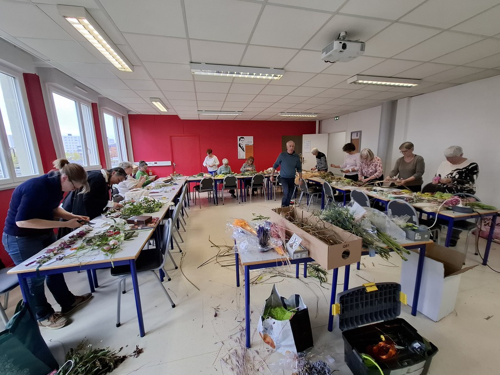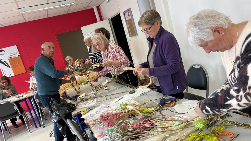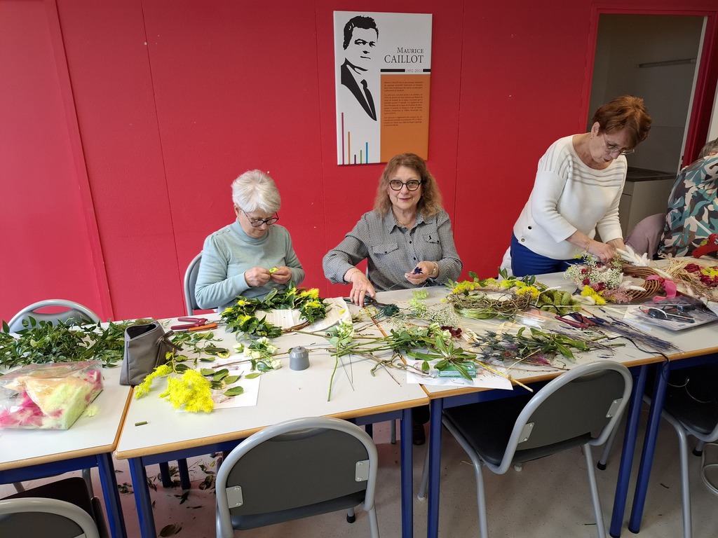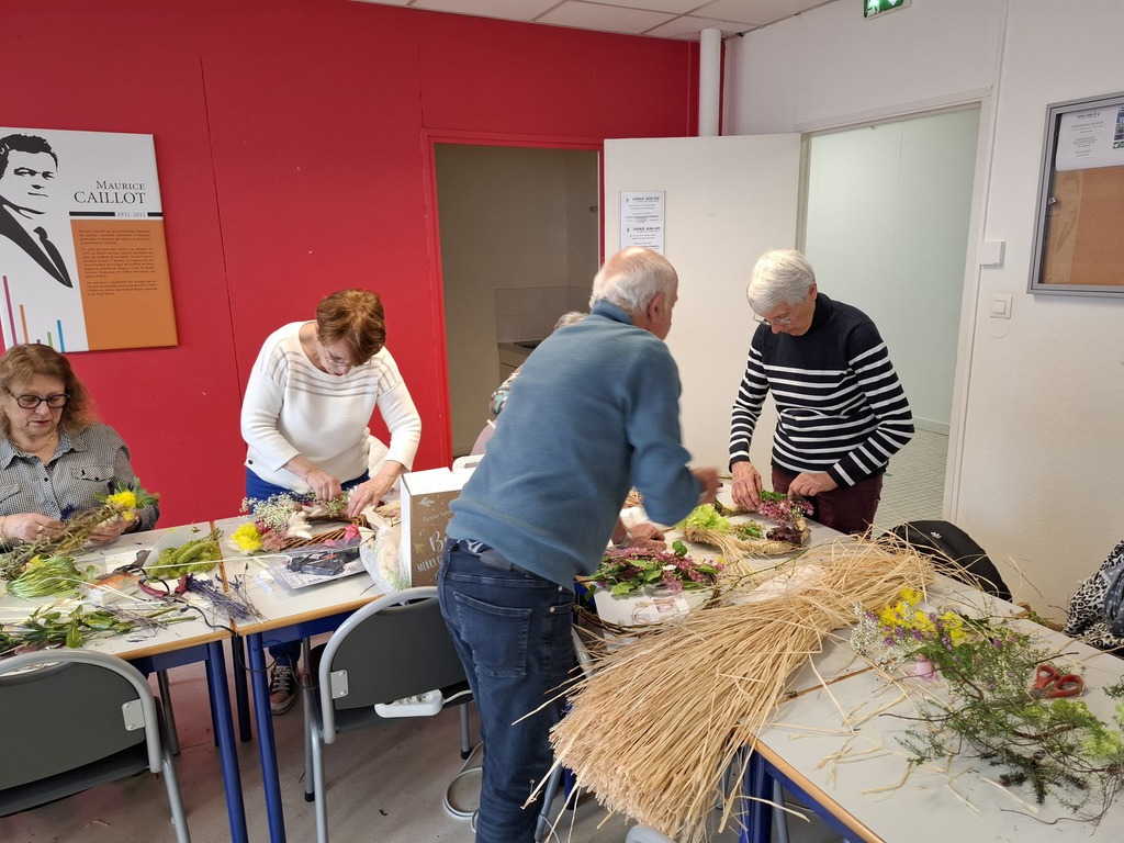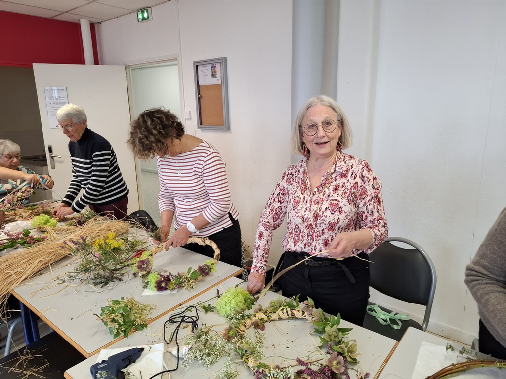 Pour la dernière séance de l'année animée par Régis MORIN les 13 participantes se sont retrouvées rue Pierre BRIDET pour apprendre à confectionner des couronnes de NOËL et des centres de table. L'après-midi s'est terminé joyeusement avec un petit goûter préparé par elles mêmes.