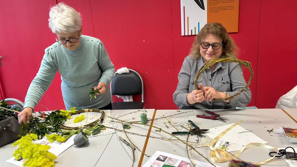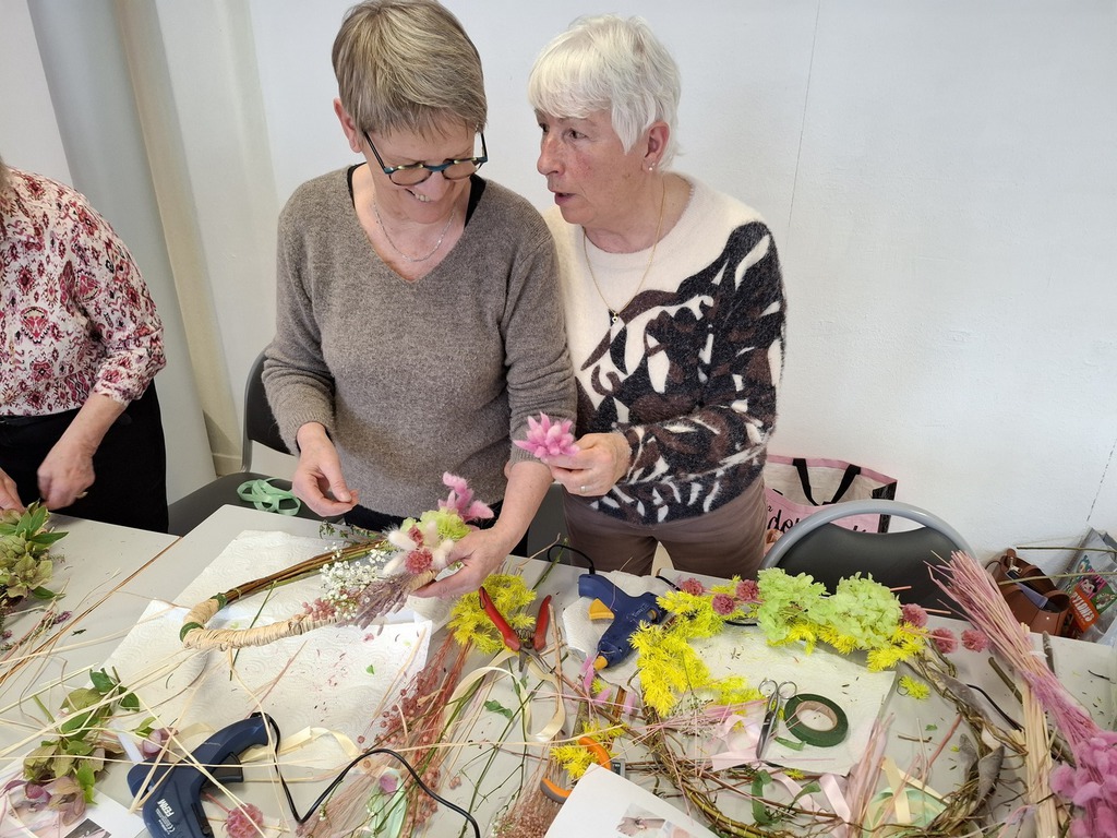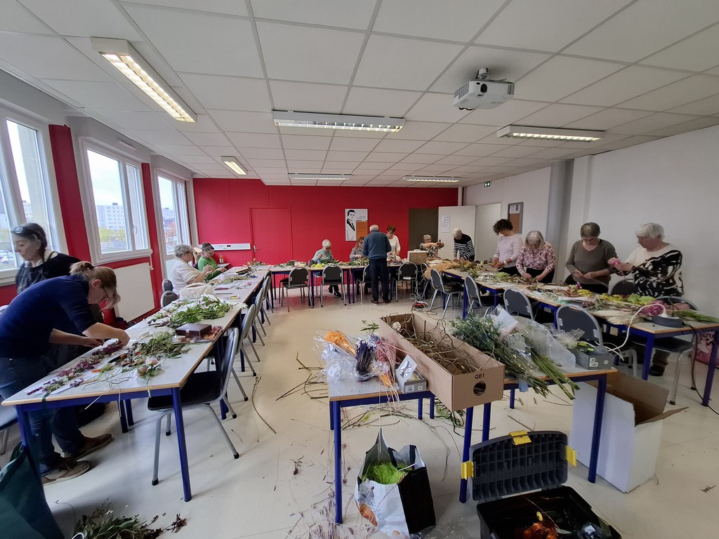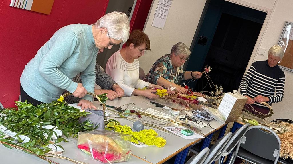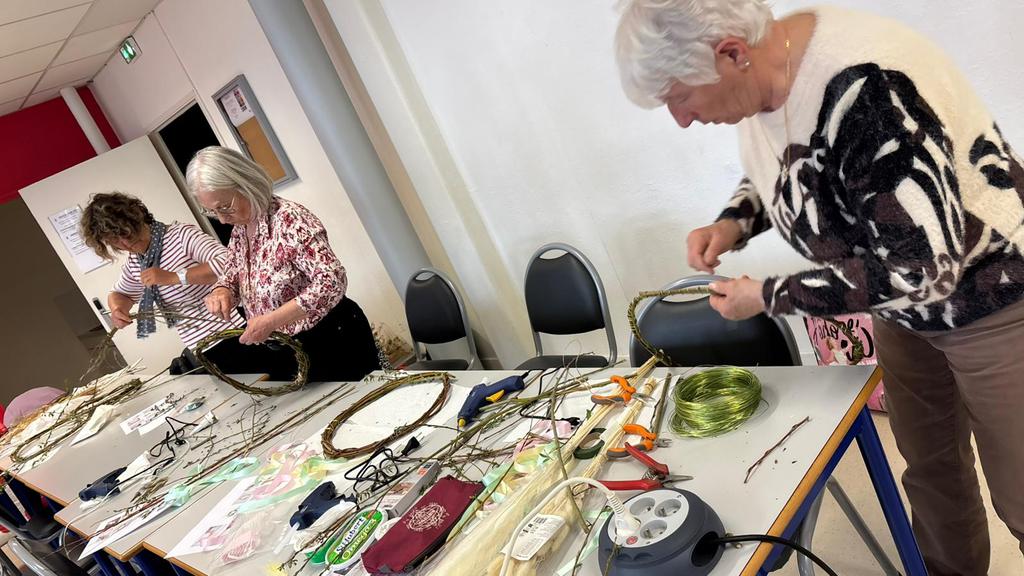 Pour la dernière séance de l'année animée par Régis MORIN les 13 participantes se sont retrouvées rue Pierre BRIDET pour apprendre à confectionner des couronnes de NOËL et des centres de table. L'après-midi s'est terminé joyeusement avec un petit goûter préparé par elles mêmes.