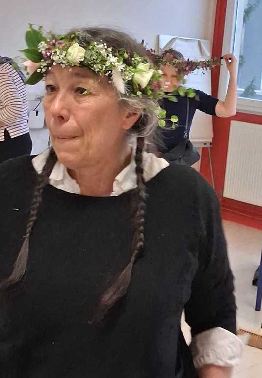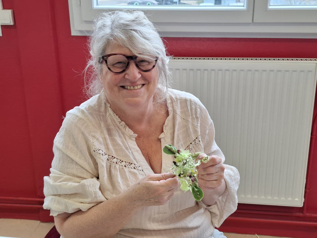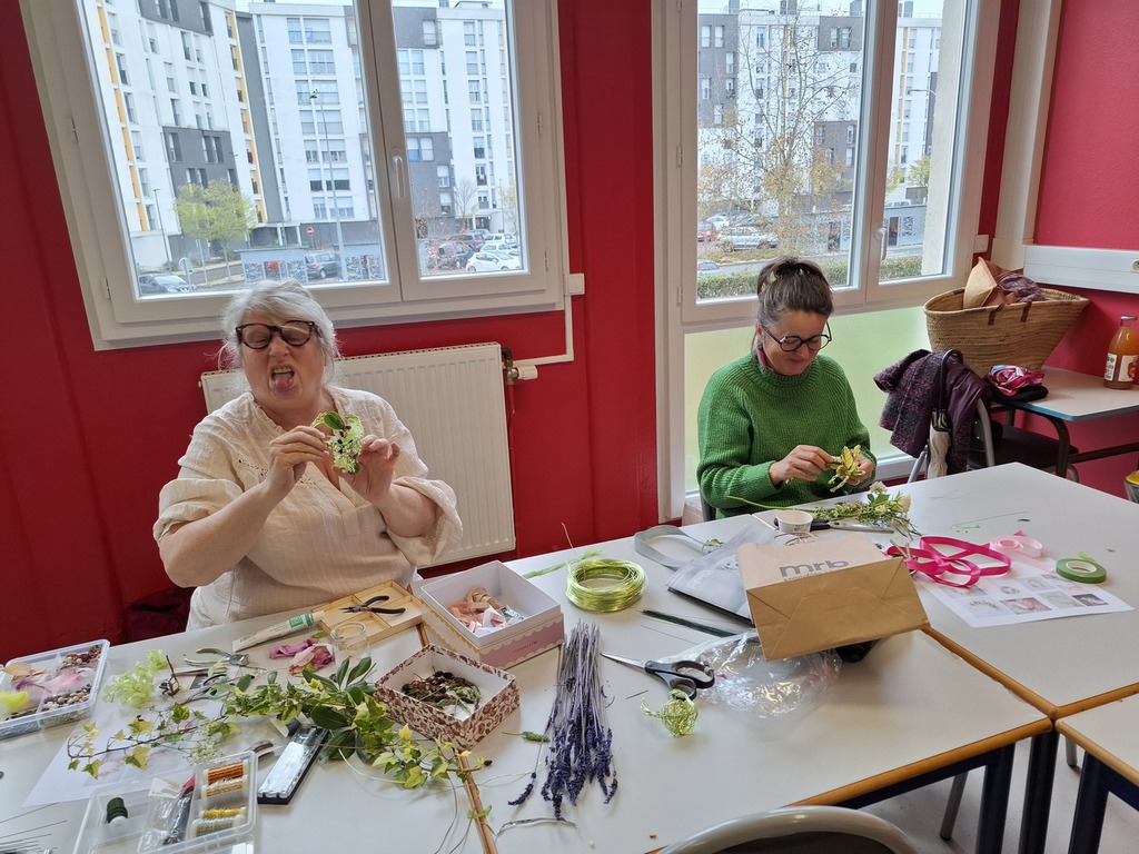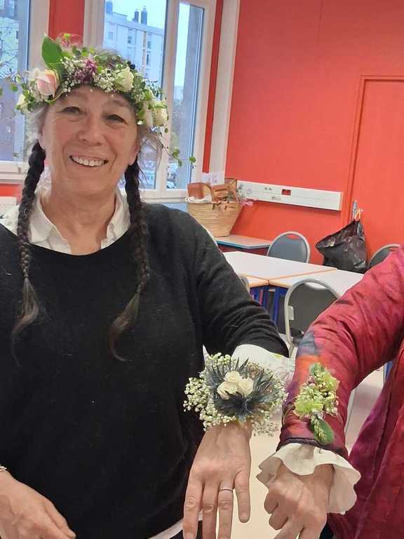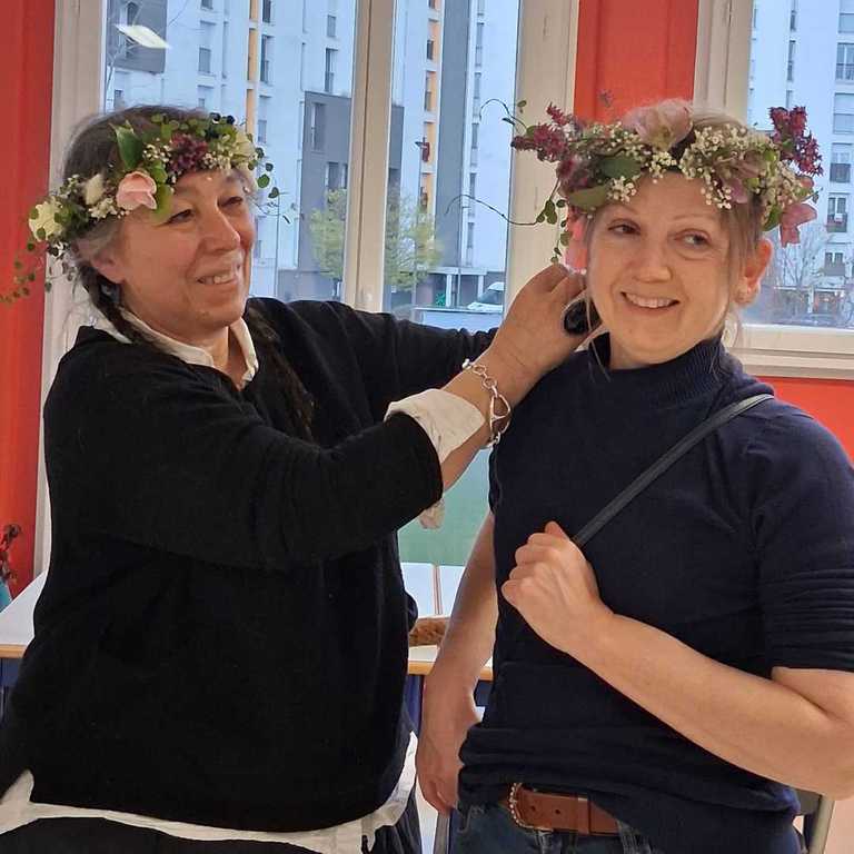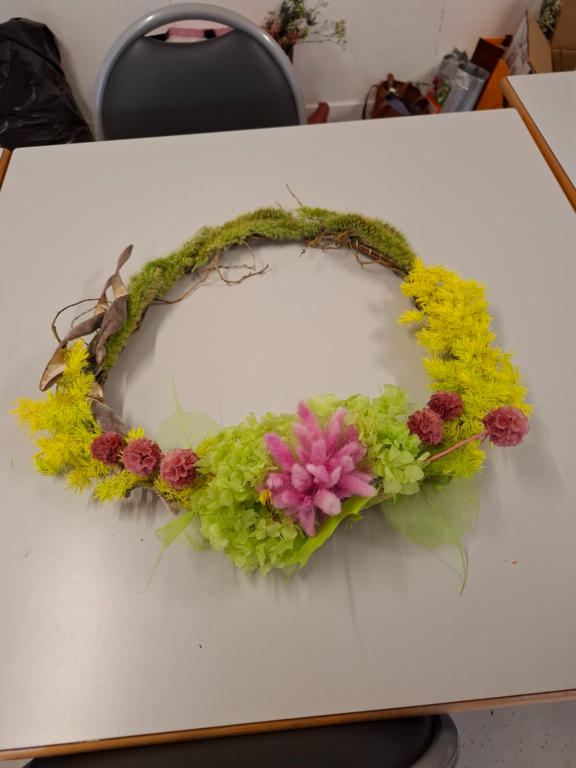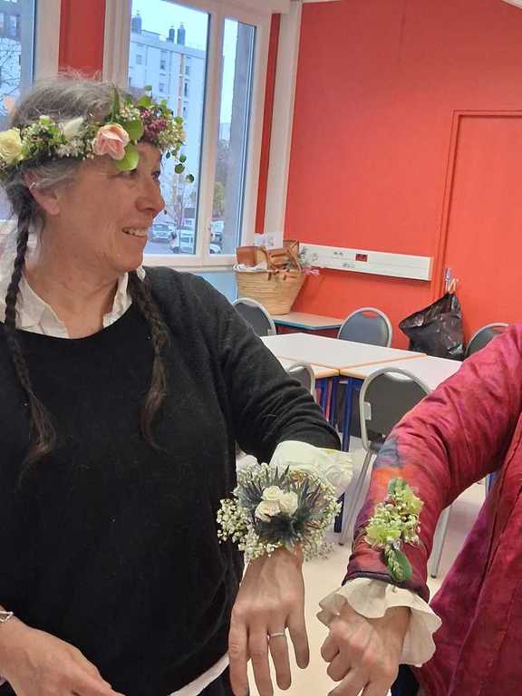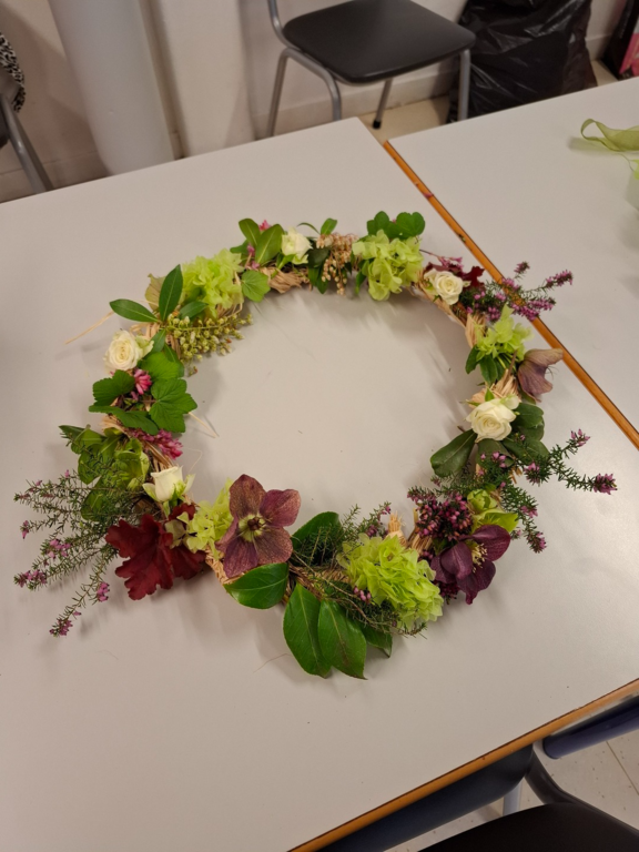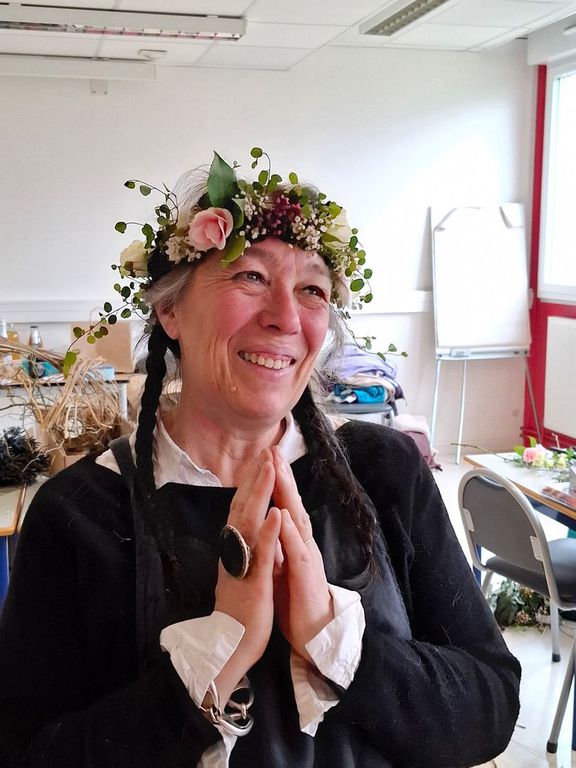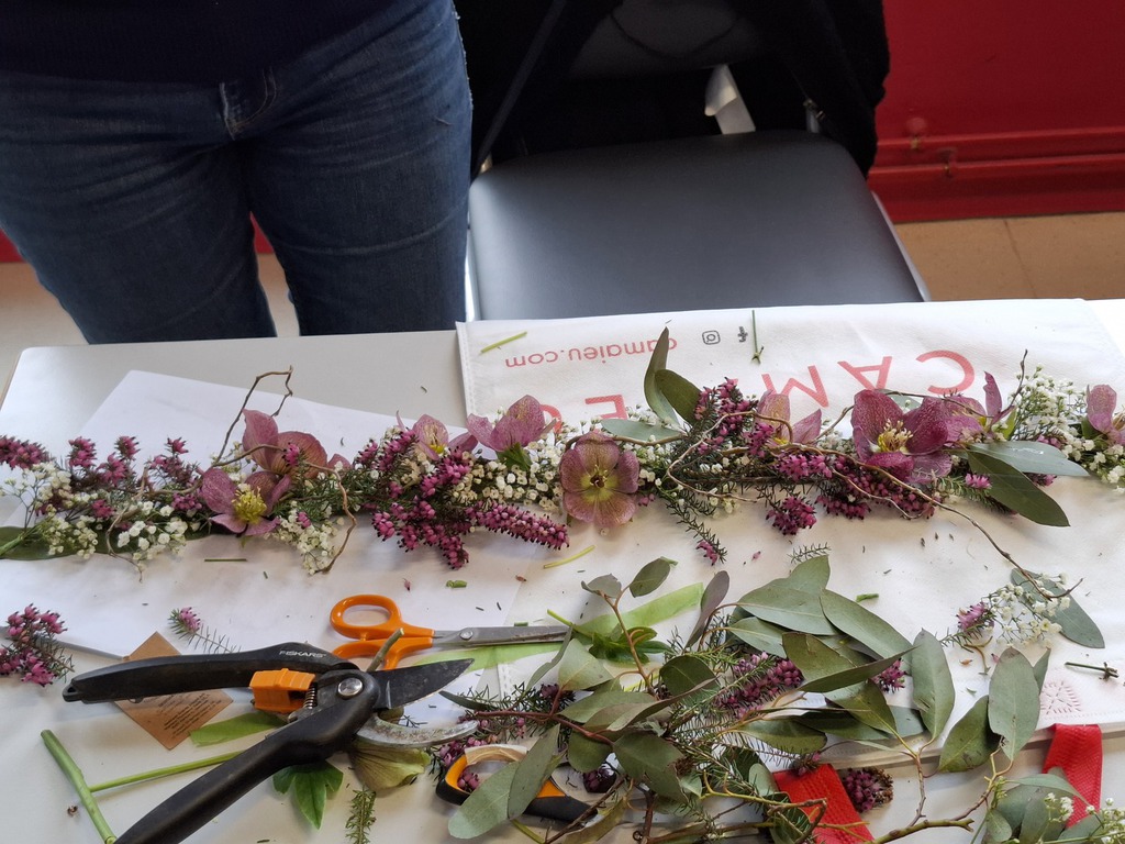 Régis nous apprenait à confectionner des couronnes ou des bijoux de fleurs , l'ambiance était studieuse mais détendue